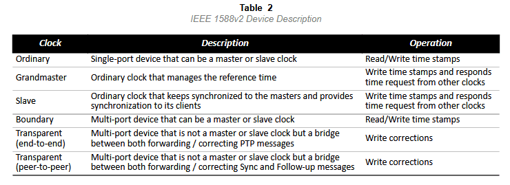 Dans le système IEEE 1588, on trouve plusieurs types d’horloges :