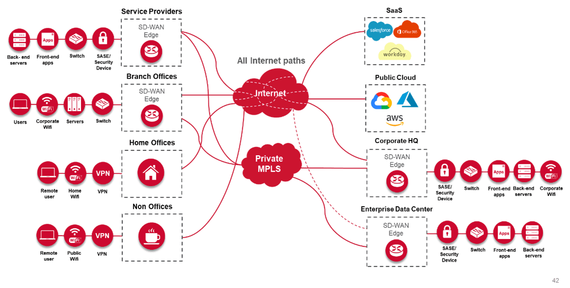 Dans le passé, les entreprises possédaient et géraient des centres de données, des bureaux distants, tous connectés via un réseau interne et des liens WAN généralement de type MPLS.